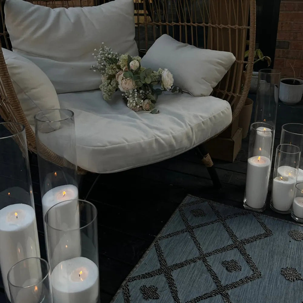 Verwende Sandkerzen, um die Stimmung je nach Saison zu ändern. Wähle weiße Kerzen für ein winterliches Gefühl, Blau oder Türkis für den Sommer und Rosa für eine frische Frühlingsnote. Perfekt, um dein Zuhause schnell zu erneuern.